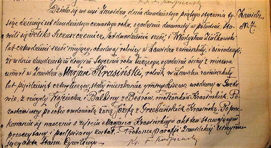 Z aktu wynika, że Marian Krasiński w Zawidzu zamieszkały, był nadal stałym mieszkańcem gminy Lisewo (obecnie byśmy powiedzieli, że miał dwa miejsca zameldowania).