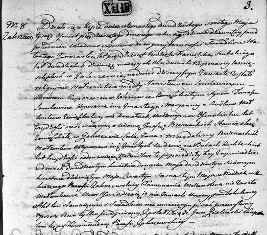 Wawrzona Chrześciańskiego, lat 27, ur. w Święcicach Parafii Orszymowskiej, syna Franciszka i Maryanny