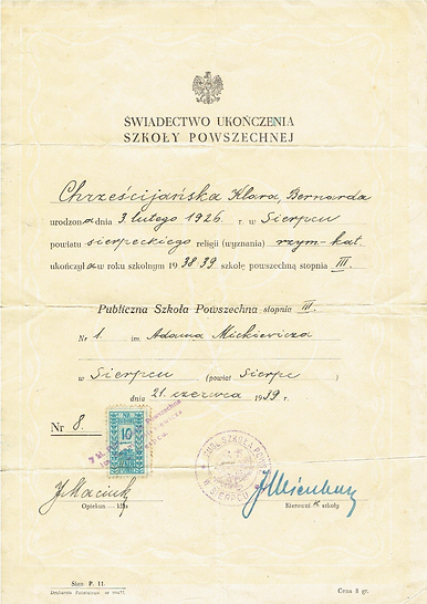 Świadectwo Ukończenia Szkoły Powszechnej - 21 czerwca 1939 r.